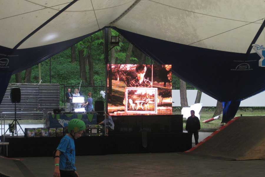 Kilka słów o realizacji Dla naszego klienta (kanału Disney XD) na event odbywający się na terenie Skate Parku Jutrzenka zapewniliśmy: ścianę LED SP 7 w wielkości 3x2m monitory plazmowe Full HD 42″ oraz 50″ konsole Sony PS3 nagłośnienie Zobacz zdjęcia z tej realizacji