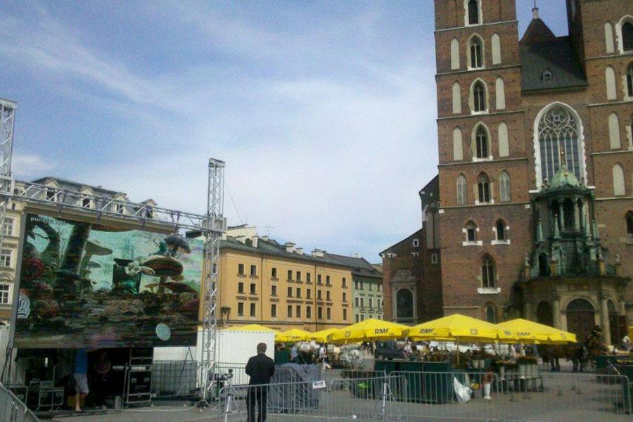 W miniony piątek (20.05.2011r.) na Rynku Starego Miasta w Krakowie przeprowadziliśmy kolejną interaktywną grę kinową Human Joystick. Tym razem jako nośnika użyliśmy telebimu diodowego o wielkości 15m2. Podczas wieczornej akcji, nasza interaktywna gra cieszyła się na prawdę dużą popularnością wśród zwiedzających.